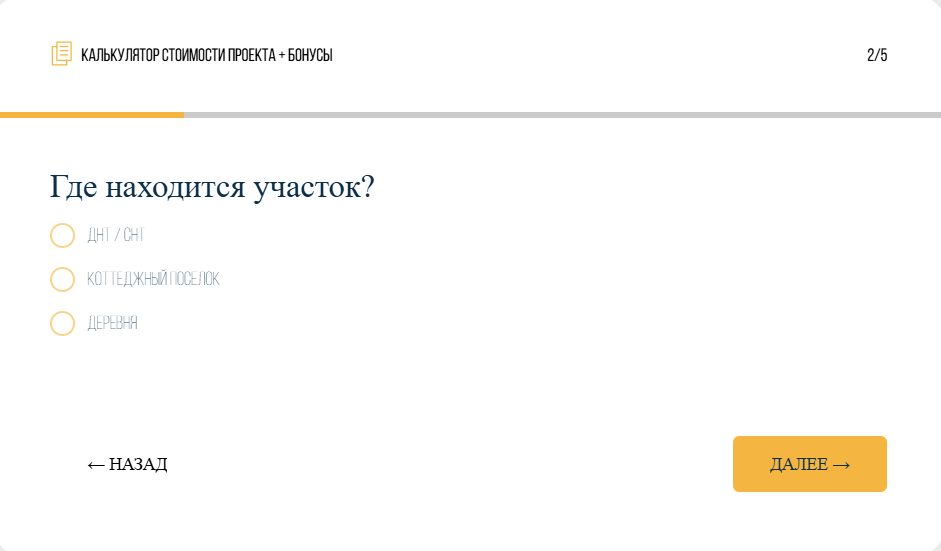 Сайт был в формате квиза, с бонусом в виде каталога бань.