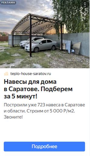 В августе 2025 года к нам обратилась компания «Теплохаус», которая занималась строительными и монтажными работами. Они хотели запустить в рекламу одно из своих направлений — это изготовление навесов.