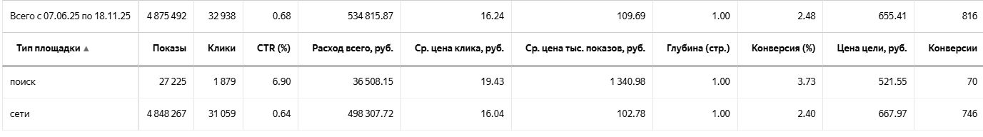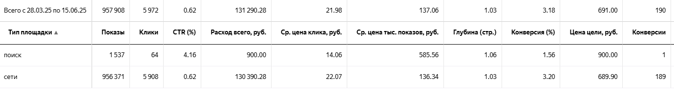 Покупка участка — это длительная сделка, поэтому у нас закрадывались сомнения, на сколько клиентам понравится такой «короткий» формат сайта и ещё и в формате небольшого опроса. Но уже в первый день запуска рекламы, мы получили отличный отклик в виде 210 конверсий за день!
